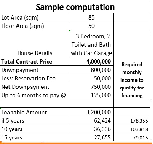 * Remaining 25 years to pay 9,574/month (Pag-IBIG Financing)